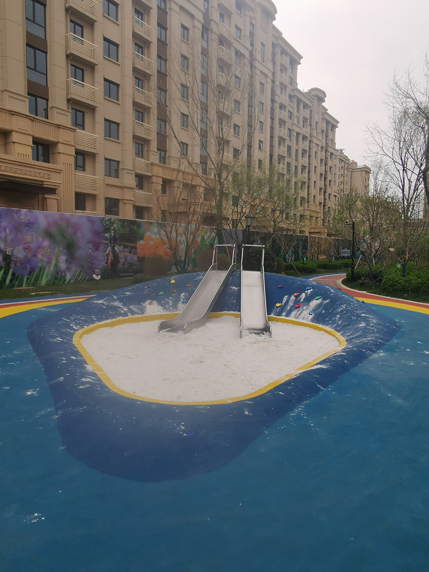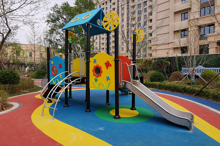 禧悅府位于北京市密云區(qū),總占地面積是56254 m2,擁有住戶732 戶,屬于比較好的居住社區(qū)。為了豐富社區(qū)兒童的娛樂生活,該住宅區(qū)與高樂迪合作,搭建微地形無動力兒童樂園。主要設(shè)施有:不銹鋼滑梯、微地形樂園、傳音筒、秋千、搖搖椅等。