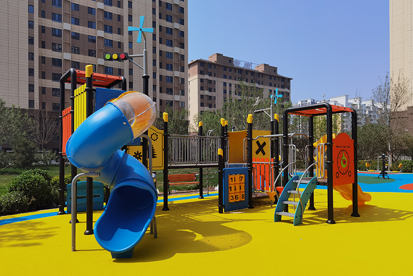 北京密云首創(chuàng)·悅欣匯位于北京市密云區(qū)檀營鄉(xiāng)檀西路東側(cè),四至為:東至檀中路,南至新北路,西至檀西路,北至開元北街。 總建筑面積約14.5萬平方米,為了豐富小區(qū)居民休閑文化生活,與高樂迪合作,修建了休閑文化廣場,該廣場適合大人還同時的健身需要。設(shè)施有兒童滑梯、蹺蹺板、攀爬架、秋千架、健身器材、休息椅等,方便居民生活休息。