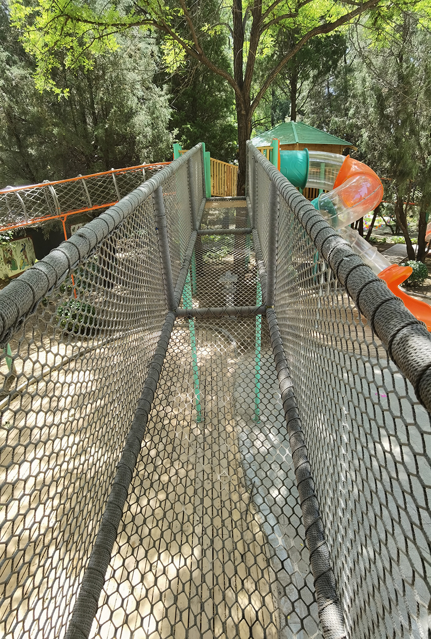 繩網(wǎng)橋,走在上面是不是 有空中行走的感覺,相當(dāng)鍛煉孩子們的膽量了。