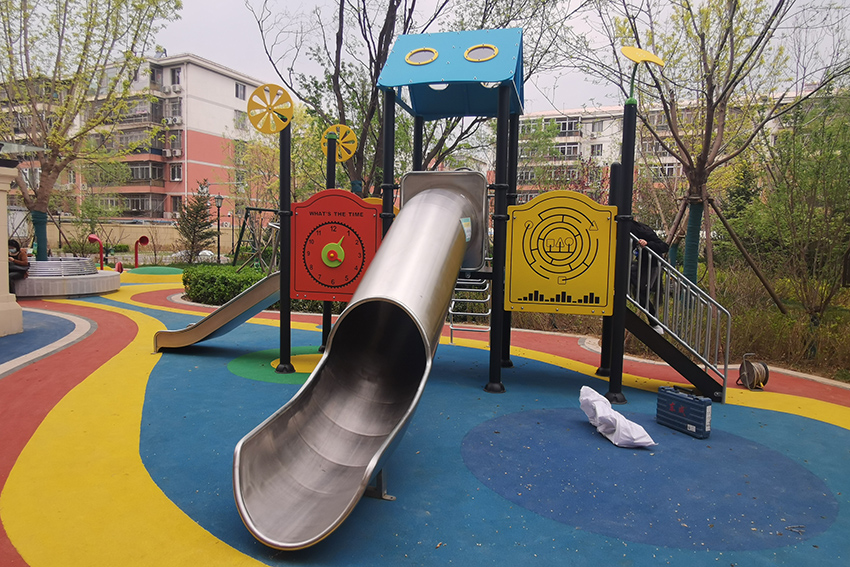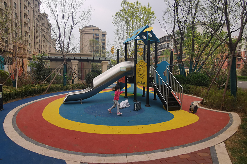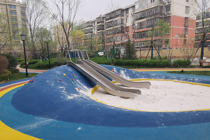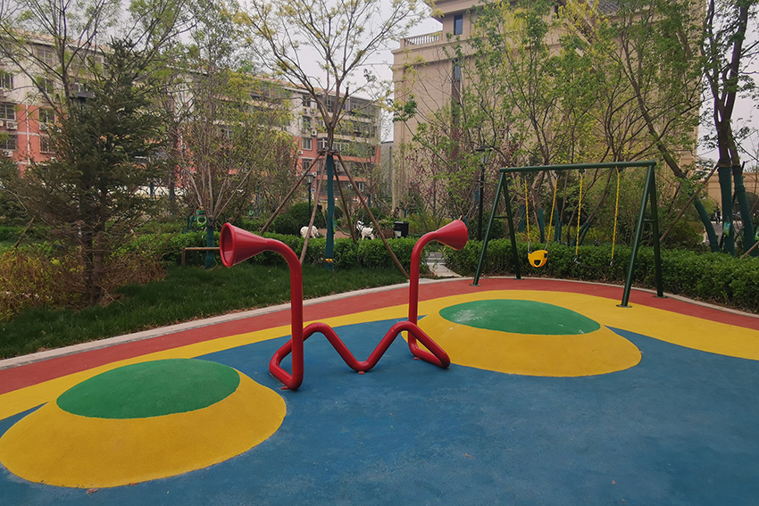 禧悅府位于北京市密云區(qū),總占地面積是56254 m2,擁有住戶732 戶,屬于比較好的居住社區(qū)。為了豐富社區(qū)兒童的娛樂生活,該住宅區(qū)與高樂迪合作,搭建微地形無動力兒童樂園。主要設(shè)施有:不銹鋼滑梯、微地形樂園、傳音筒、秋千、搖搖椅等。