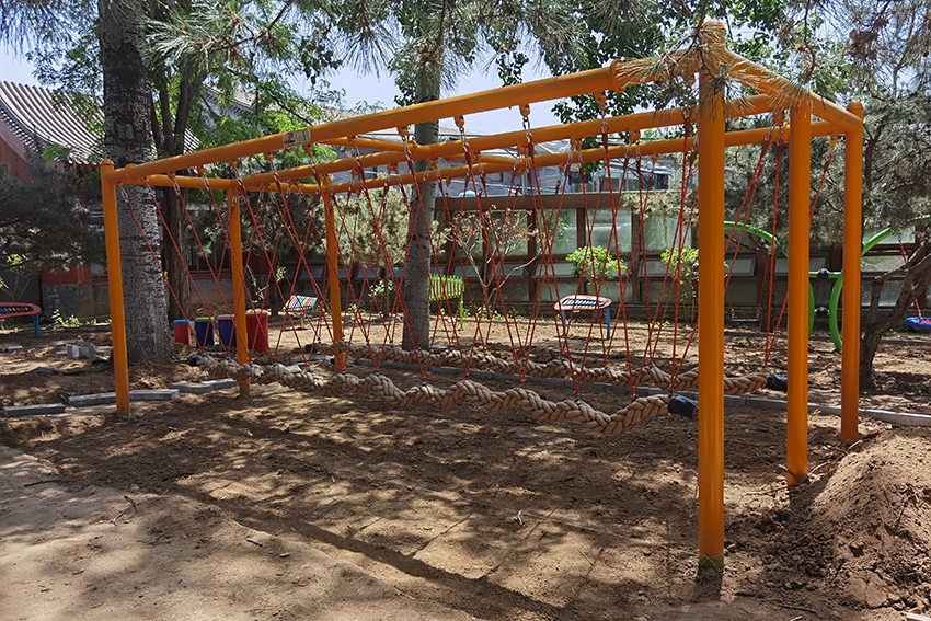 繩網(wǎng)橋,走在上面是不是 有空中行走的感覺,相當(dāng)鍛煉孩子們的膽量了。
